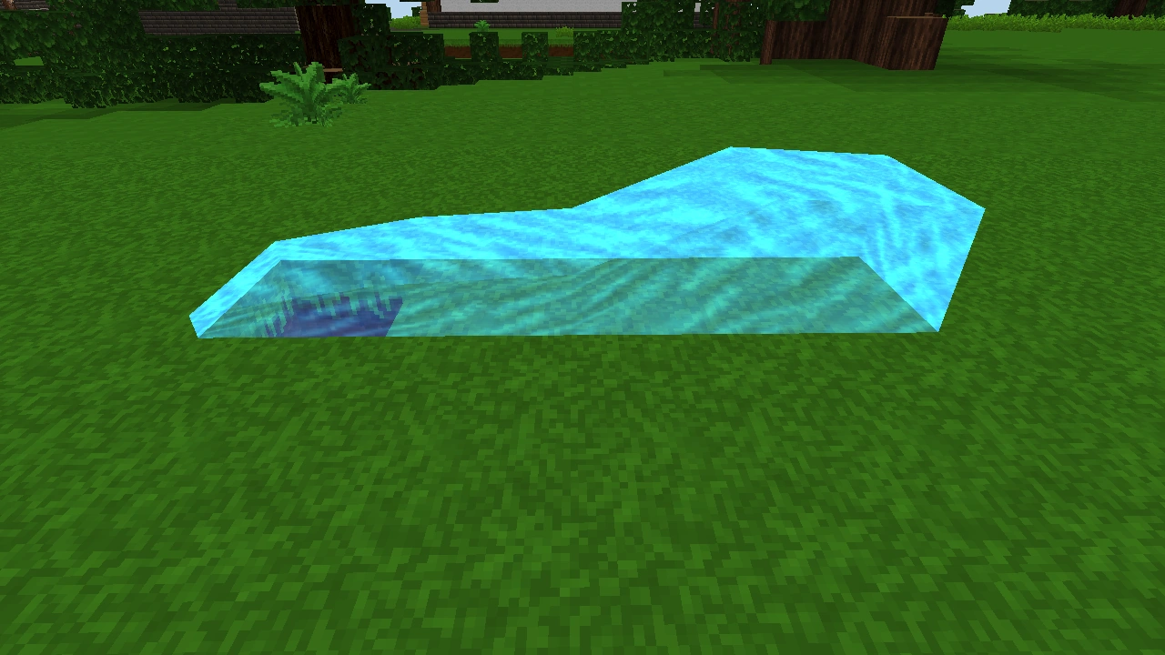 Water spreads over the surface of blocks. Players and items caught by the stream will be carried by the flow.